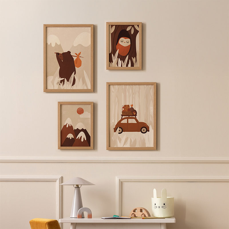 Une randonnée en forêt pour les aventuriers ! Couleurs aux teintes naturelles avec des touches de coloris boisées, une ambiance bohème pour une chambre d’enfant à l’atmosphère chic et moderne!